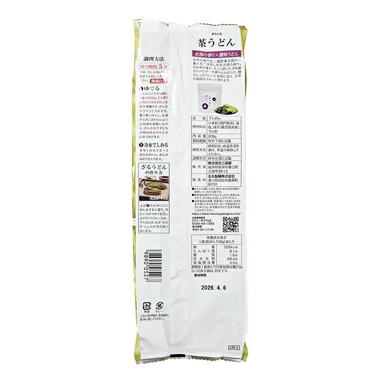 三國屋善五郎一番人気の深蒸し煎茶「式部の香り」のお茶の葉を丸ごと砕いたきめ細かいパウダーを練り込みました。つややかな麺に、もちっりとしたコシのある食感に加え、口に含んだ瞬間から、しっかりと香るお茶の風味と、つるっとした喉越しが特徴です。