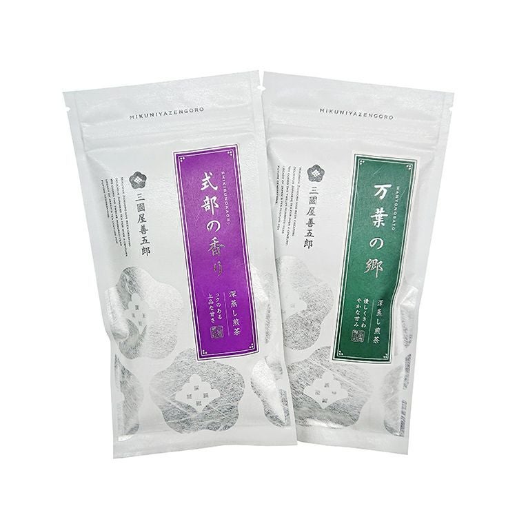 【セット内容】 式部の香り(100g) 万葉の郷(100g) 三國屋善五郎の一番人気「式部の香り」と 新しく定番に加わった「万葉の郷」 どちらも福井県にゆかりのある商品名となっており、 平安時代にまつわるエピソードを持っています。 そのイメージから「平安の宴」というギフト名になりました。 三國屋善五郎の定番煎茶2種類100g入りのセットです。 リーフタイプ100gの組み合わせ。