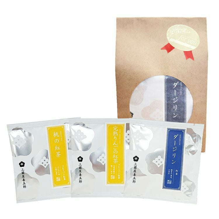 【セット内容】 (茶楽)ダージリン3g×1p (茶楽)桃の紅茶3g×1p (茶楽)完熟りんごの紅茶3g×1p 角底袋(茶) ※こちらはラッピングしてお届けさせていただきます。 また、リボンの色や柄は変更になる場合があります。 メール便不可の商品となります