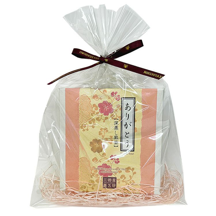 鹿児島産の香りの良いお茶をじっくり蒸し、優しいまろやかな味わいに仕上げました。しっかり濃く淹れることができるお煎茶です。「ありがとう」のメッセージ付きパッケージなので、プチギフトにもぴったりです。