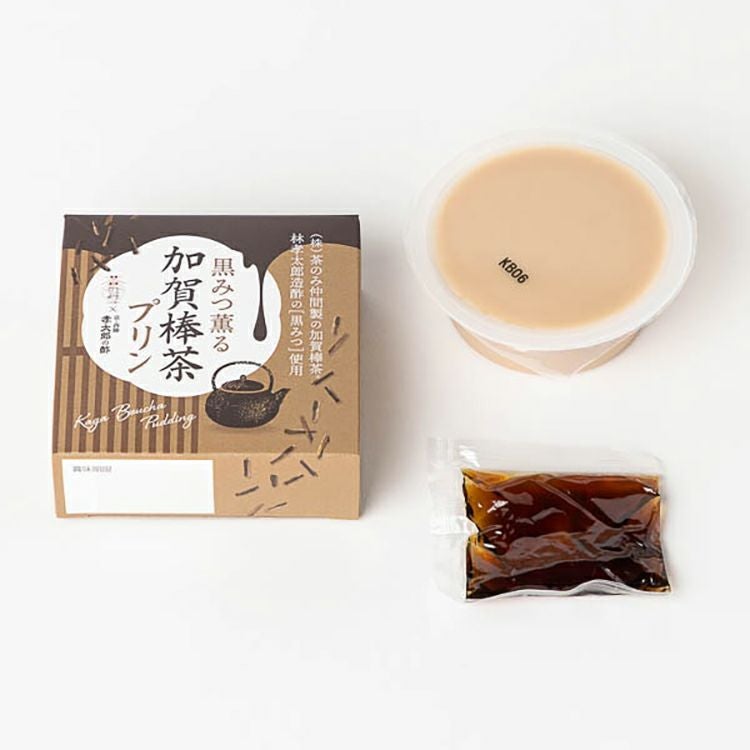 石川県の名産、加賀棒茶を使った香り高いプリンに、京都の黒みつをかけて召し上がる贅沢なプリンです。冷蔵庫で冷やしてお召し上がりいただくのもオススメです。