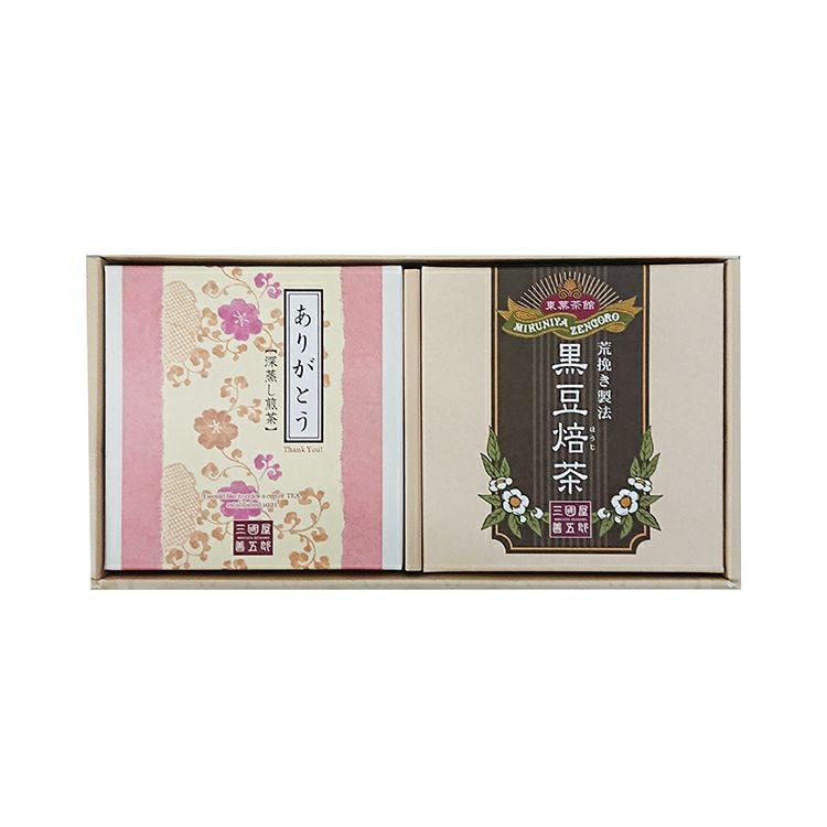 【セット内容】 ありがとう【深蒸し煎茶】ティーバッグ3g×5p(小薄箱) 黒豆焙茶ティーバッグ3g×5p(小薄箱) ※箱入れ、包装込のギフトです。