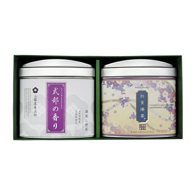 【セット内容】 式部の香り 60g(R缶) 加賀棒茶 40g(R缶) 2貼箱 ※箱入れ、包装込の商品です。