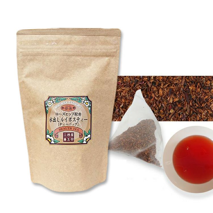 水出しによってルイボスティーの香りも残り、「ビタミンの爆弾」であるローズヒップと「疲労回復」効果のあるハイビスカスを細かく刻んだものをブレンドすることで、水出しでも浸出し易く、紫外線や夏バテを気にする季節にはピッタリの甘酸っぱい味わいのお茶に仕上げました。
