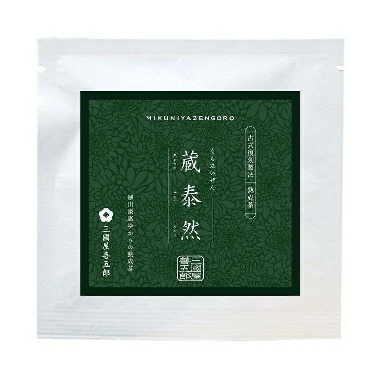 この古代ゆかしき製法に基づき、お茶蔵に深蒸し煎茶を貯蔵熟成させ創作したお茶が三國屋善五郎「蔵泰然」です。