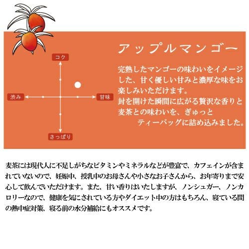甘く優しく、とろけるアップルマンゴーの香りの麦茶です。