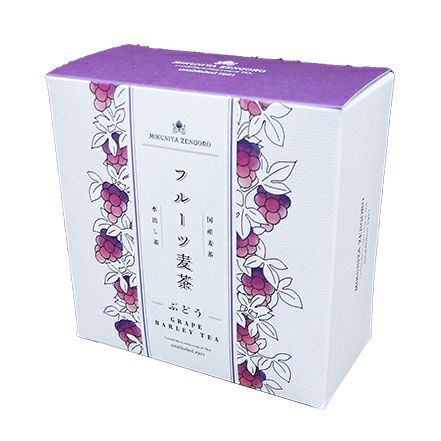 甘みと香りが特徴の大麦とまろやかな甘みを持つはだか麦をブレンドしました。そのまろやかな麦茶をベースに華やかな葡萄の香りを合わせ、上品な甘みの中にもすっきりと爽やかな香りが広がるフルーツ麦茶に仕上げました。