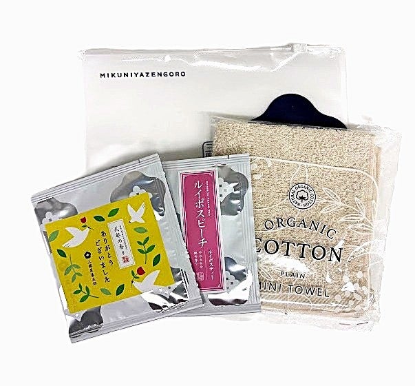 (茶楽)ありがとうございました・(茶楽)ルイボスピーチ・コットンタオル・スライダーポーチセット