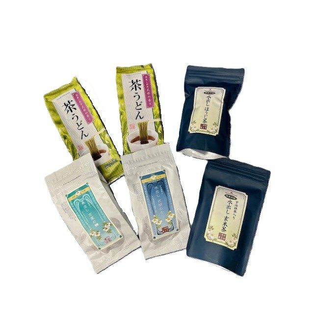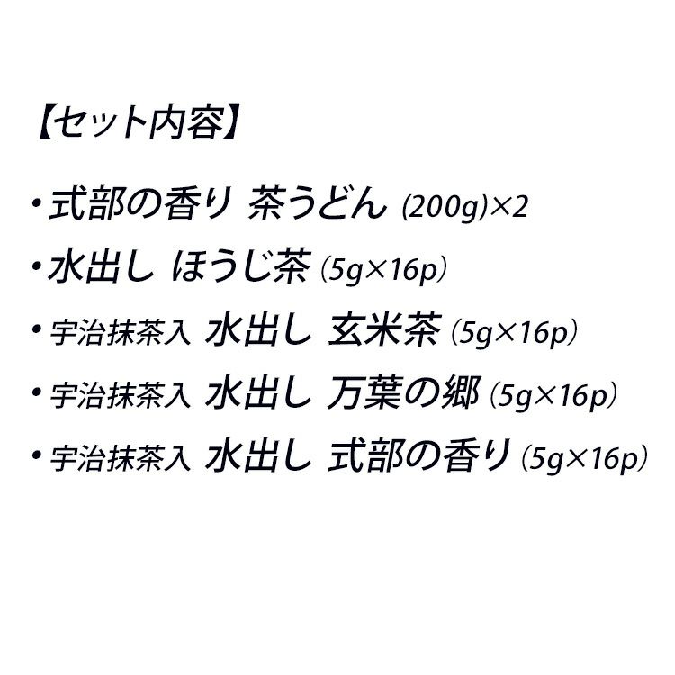 これからの季節、水出しでおいしく飲んでいただけるお茶と人気商品「式部の香り」 を麺に練り込んだ香り高い茶うどんをセットにしました。水出し茶と冷やしうどんで涼やかなひとときをお楽しみいただけます。