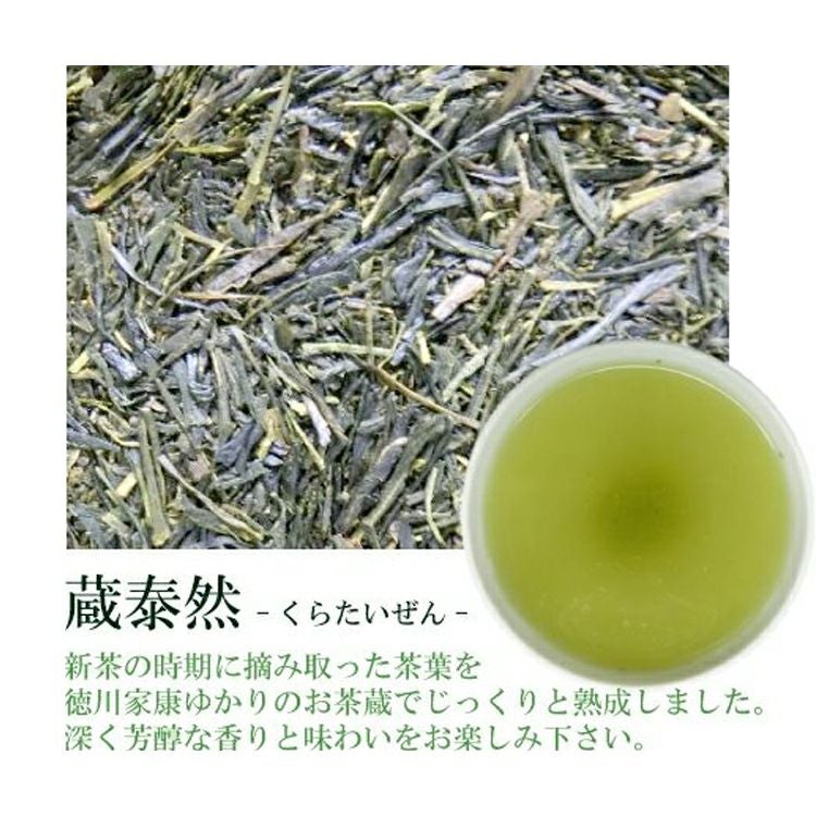 この古代ゆかしき製法に基づき、お茶蔵に深蒸し煎茶を貯蔵熟成させ創作したお茶が三國屋善五郎「蔵泰然」です。