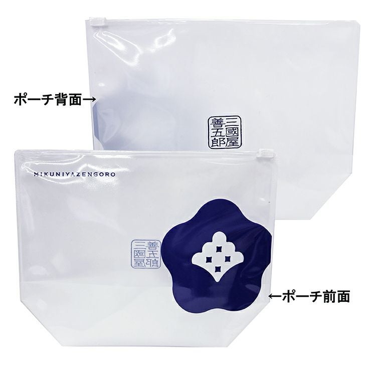 プチギフトにおすすめのスライダーポーチ。三國屋善五郎のシンボルマークが入ったシンプルでかわいいデザインです。プレゼントでもらった後は、小物入れにも使えます。
