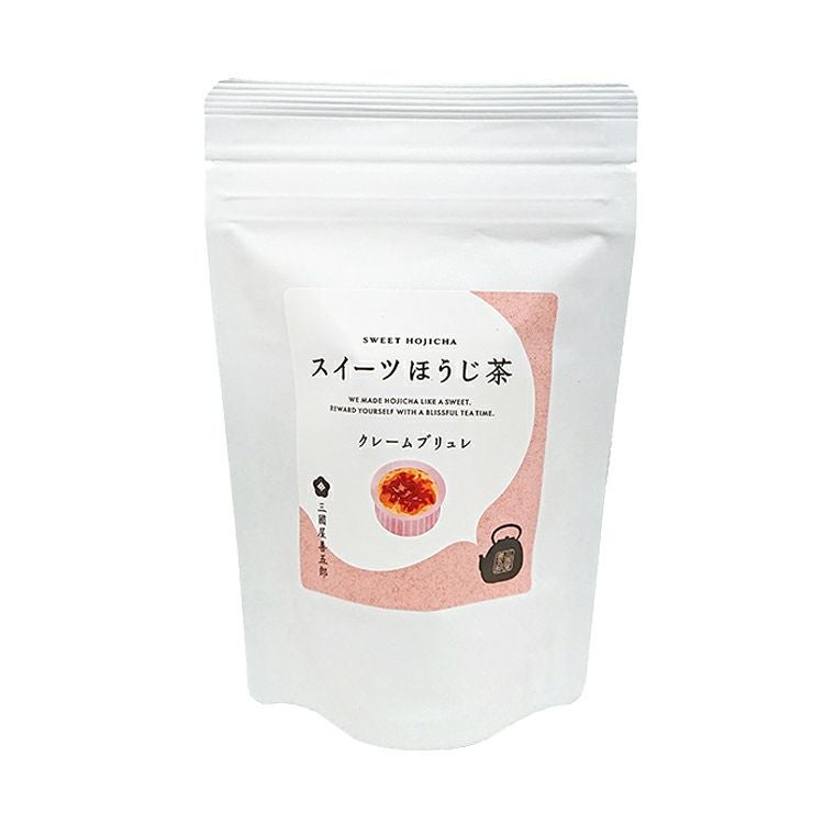表面を焼いた薄いカラメルの、パリッとした食感が美味しいクリームブリュレの香りをイメージして作ったほうじ茶です。 甘いものが食べたい時に、スイーツ感覚でお飲みいただけるほうじ茶です。
