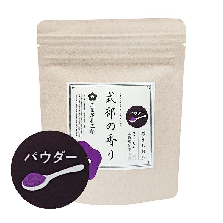 「ちょっと個性的だけれども、毎日楽しめる飲み飽きない味わい」三國屋善五郎を代表する、一番人気の深蒸し煎茶「式部の香り」のパウダータイプです。