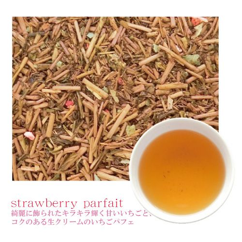 綺麗に飾られたキラキラ輝く甘いいちごと、コクのある生クリームのいちごパフェの香りをイメージして作ったほうじ茶です。