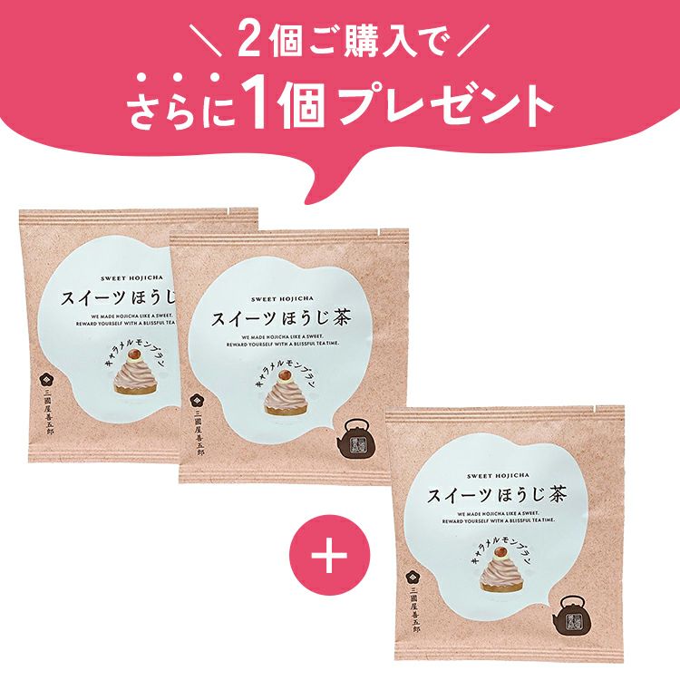 栗の甘さとキャラメルの濃厚な味わいのモンブランの香りをイメージして作ったほうじ茶です。 やさしい甘い香りがほうじ茶の芳ばしい香りとあいまって、スイーツ感覚でお飲みいただけます。